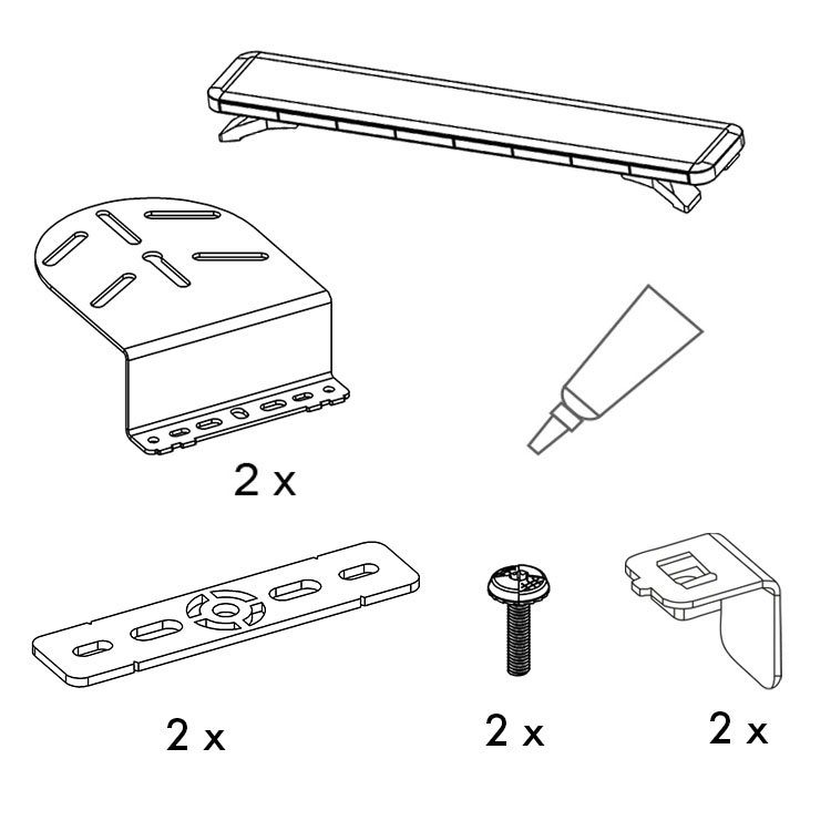 Recuerde también que los materiales de montaje que incluye cada kit están destinados a su instalación en la carrocería. Las escuadras para la instalación de módulos en raíles de suelo y pared sin taladrar se suministran por separado.