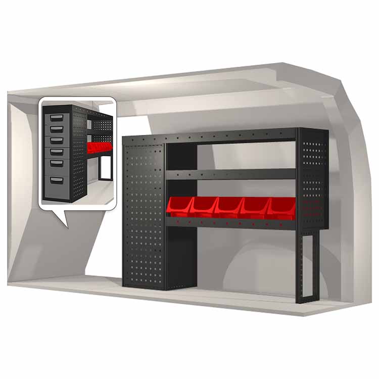 Recuerde también que los materiales de montaje que incluye cada kit están destinados a su instalación en la carrocería. Las escuadras para la instalación de módulos en raíles de suelo y pared sin taladrar se suministran por separado.