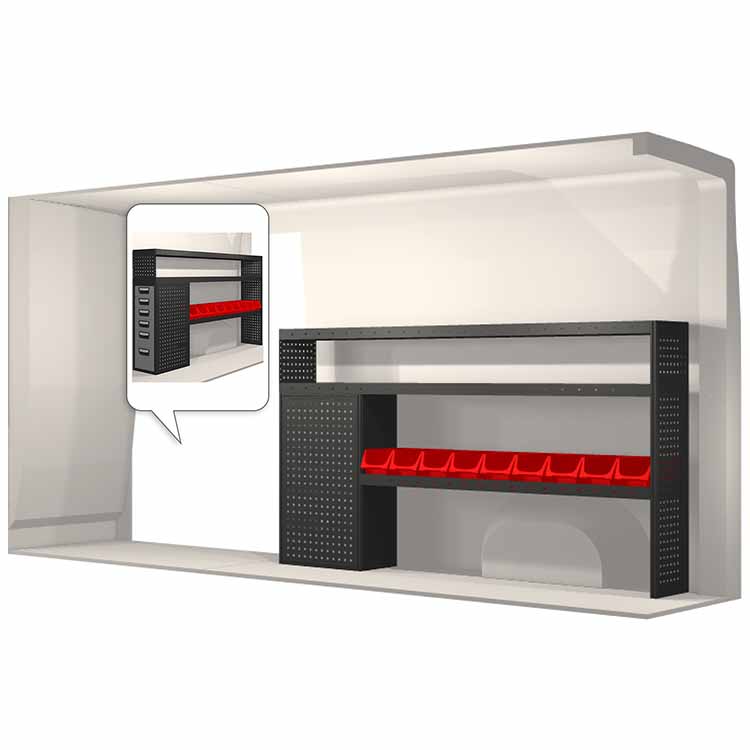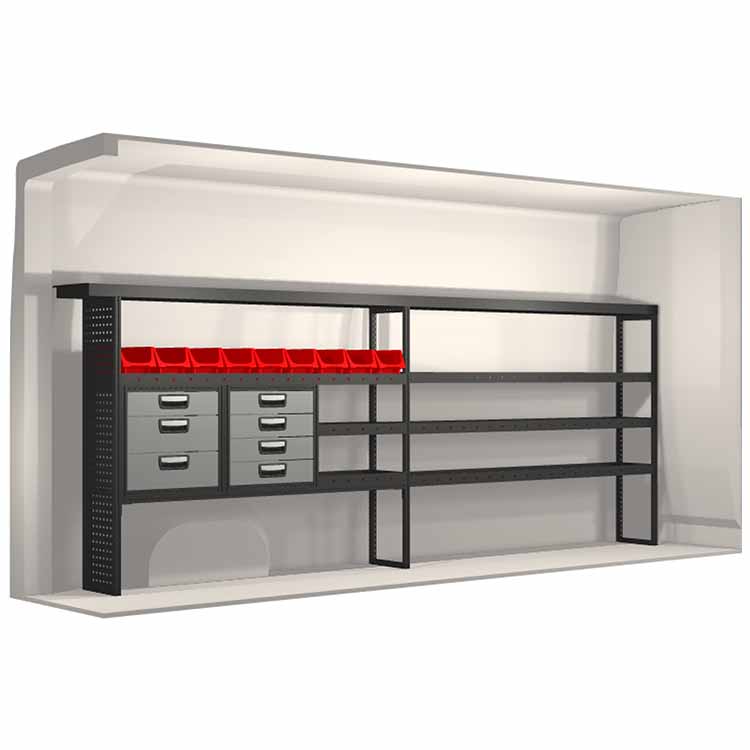 Recuerde también que los materiales de montaje que incluye cada kit están destinados a su instalación en la carrocería. Las escuadras para la instalación de módulos en raíles de suelo y pared sin taladrar se suministran por separado.