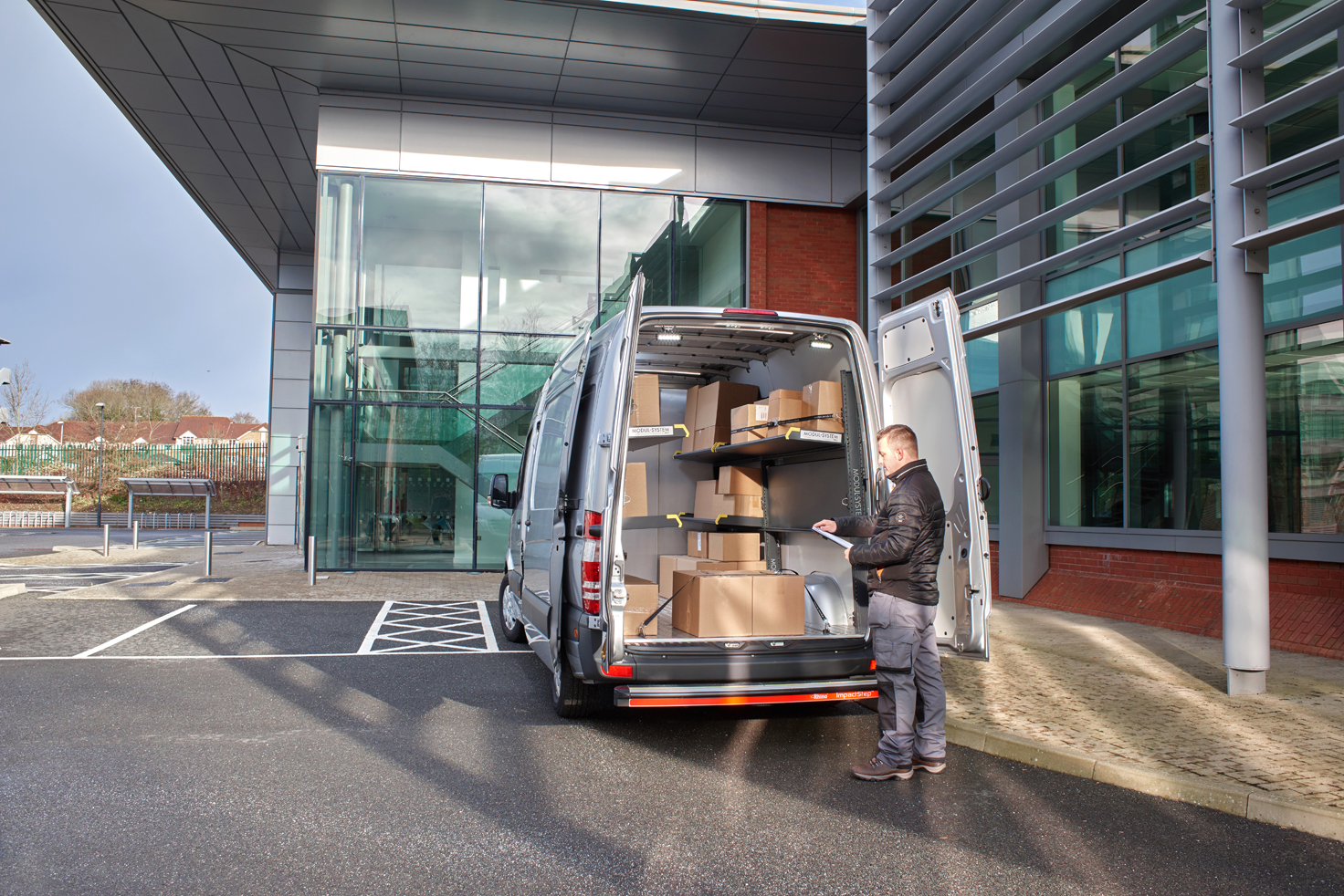 Para Modul-System, la gama de furgonetas de reparto Modul-Express es un área de negocio en rápido crecimiento. Por delante de los demás, Modul-System ya ofrece soluciones ligeras de estanterías, suelos y mamparas para proteger la carga útil de una furgoneta. El acero de ultra alta resistencia se utiliza para reducir enormemente el peso de los accesorios. Modul-System ya satisface muchos de los requisitos de las furgonetas eléctricas.