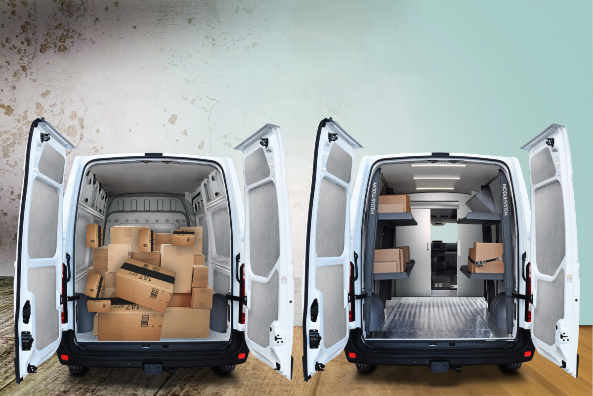Cuando se trata de entregar paquetes, las soluciones de almacenamiento para furgonetas de Modul-Express hacen que el trabajo duro sea una tarea ligera.