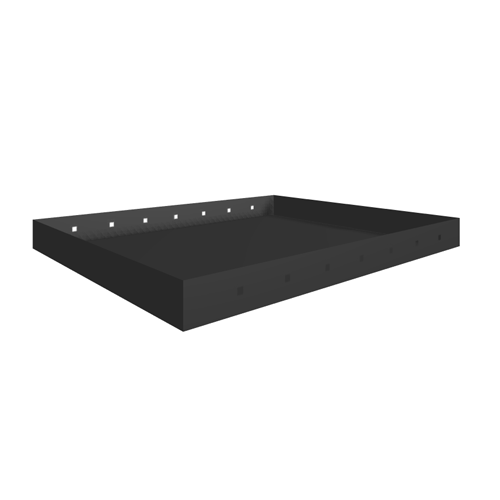 The shelf has a height of 54 mm and the long-side edges are rolled to increase load capacity. The cut-outs along the front and back are used for mounting dividers. For ultimate practicality, shelves can be combined with Modul-Boxes and rubber mats. Load capacity 120 kg.