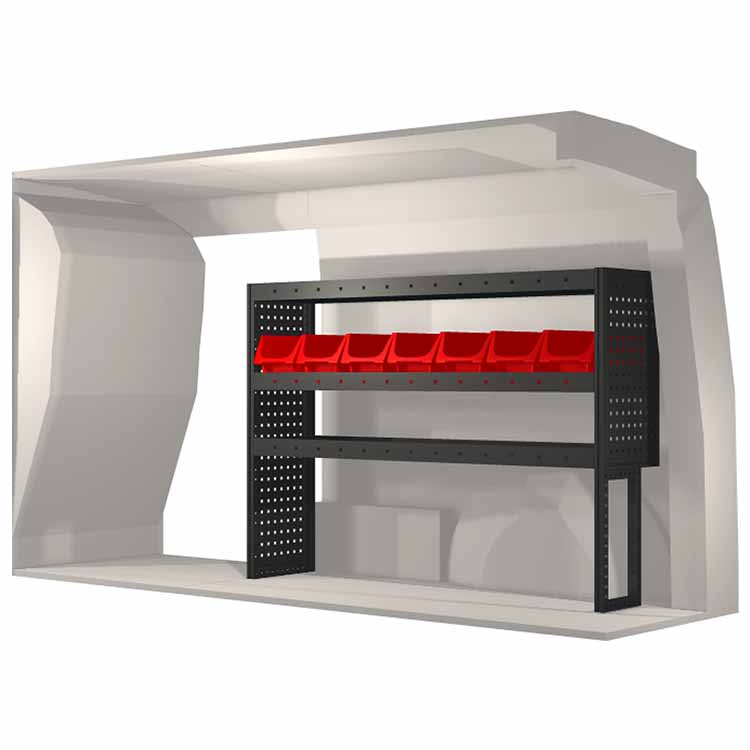 El equipamiento ha sido especialmente diseñado para garantizar el ajuste óptimo para el vehículo, así como la mayor funcionalidad y seguridad posible. Se ha desarrollado para uso profesional, es versátil y está destinado para trabajos de servicio en diversos tipos de negocio. Todas las estanterías están equipadas con alfombrillas de goma, y todos los cajones con alfombrillas de espuma de plástico. Los accesorios de montaje están incluidos.