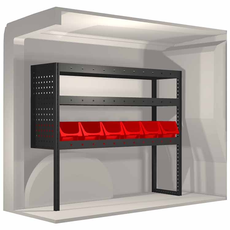 El equipamiento ha sido especialmente diseñado para garantizar el ajuste óptimo para el vehículo, así como la mayor funcionalidad y seguridad posible. Se ha desarrollado para uso profesional, es versátil y está destinado para trabajos de servicio en diversos tipos de negocio. Todas las estanterías están equipadas con alfombrillas de goma, y todos los cajones con alfombrillas de espuma de plástico. Los accesorios de montaje están incluidos.