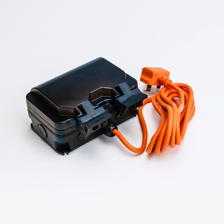 Dual Power Socket IP66 UK plug, 3m orange cable