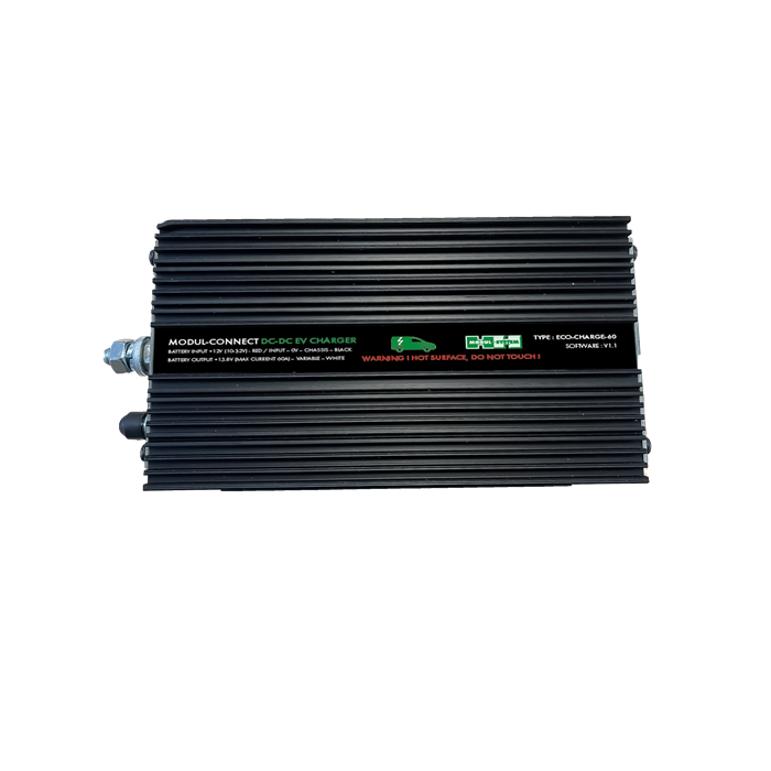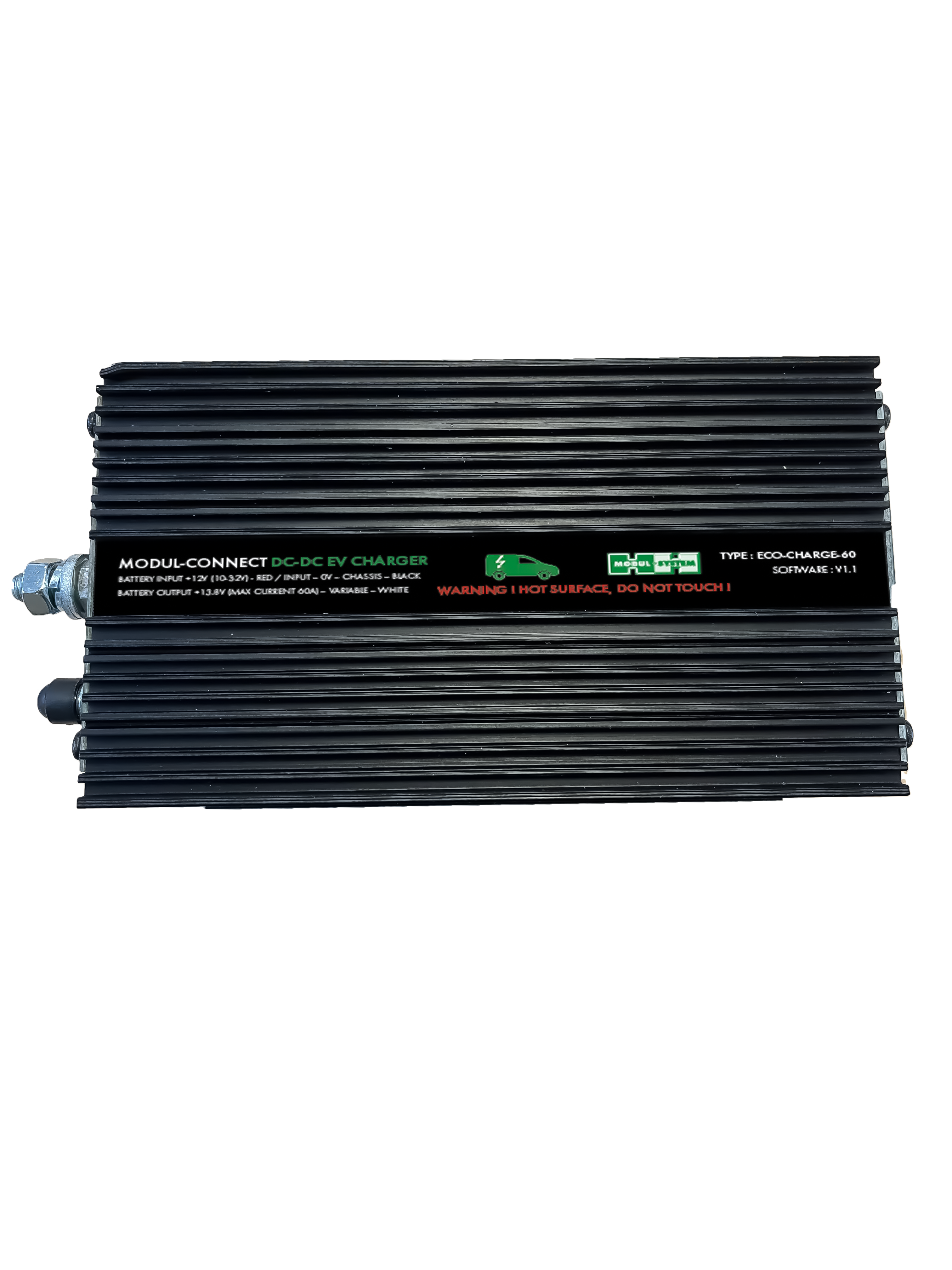 The Modul-System unique EV Dc-Dc Charger 60A allows the vehicles additional auxiliary batteries to be charged at the same time as vehicles high voltage (HV) drive battery and 12v chassis battery. 3-stage battery-to-battery charger suitable for all electric light commercial vehicles, including hybrids.