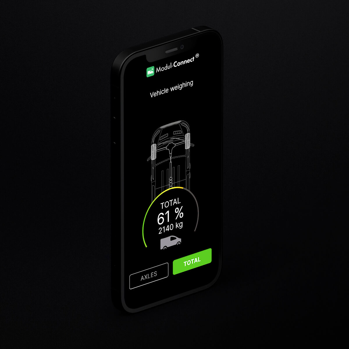 Con el sistema de pesaje de vehículos de a bordo instalado, el conductor puede monitorizar el peso del eje delantero y trasero, así como el peso total del vehículo. Hay sensores instalados en la suspensión del vehículo, y la unidad de control principal calculará la carga real en función de los datos de los sensores.