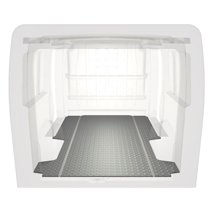 Los suelos extra largos para Citroën Jumper / Peugeot Boxer / Fiat Ducato son ligeros y robustos, e incorporan una placa de aluminio antideslizante y raíles de carga (longitudinal) que permiten la instalación rápida y segura de sistemas de estantes y otros accesorios.