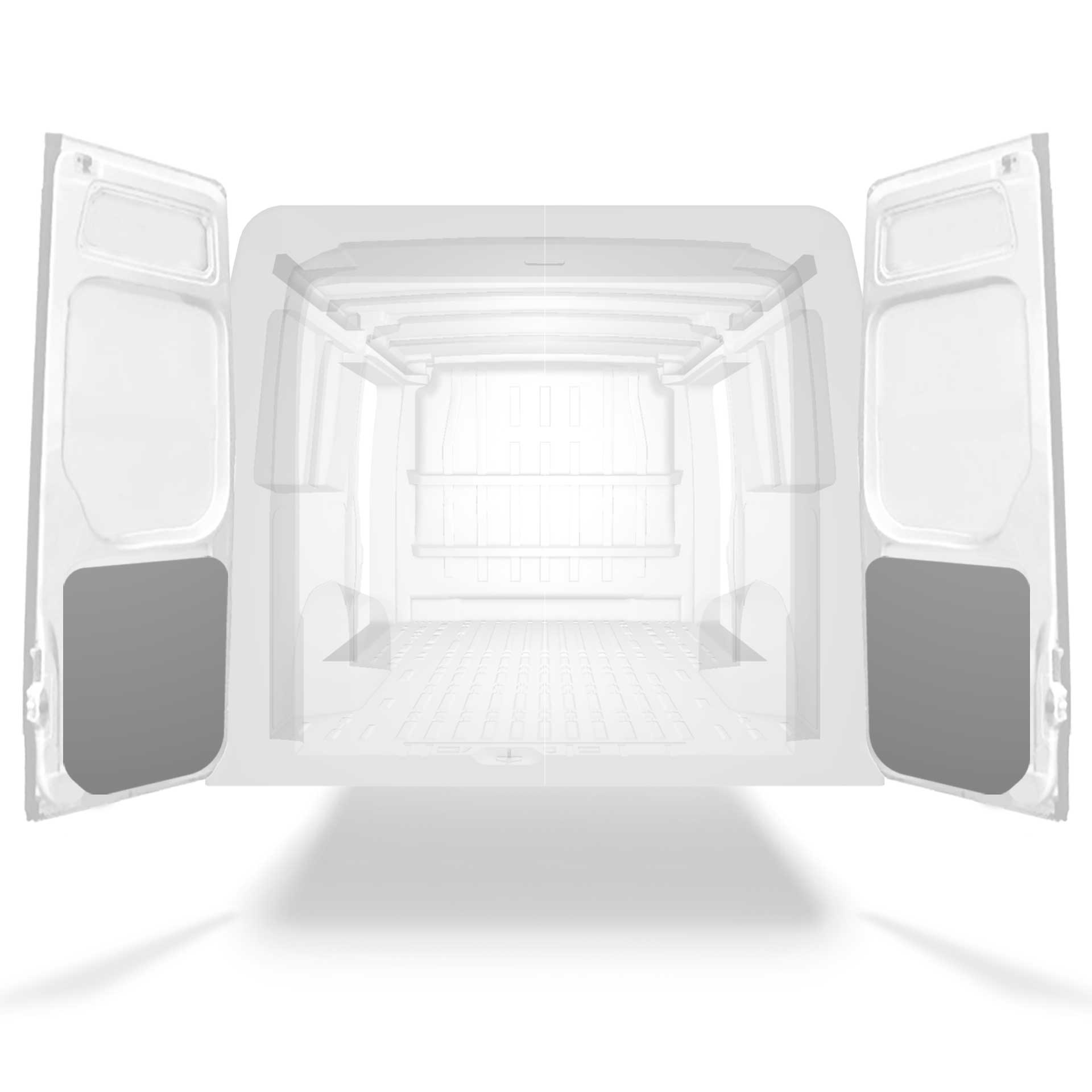 Revestimiento panelado posterior inferior ligero para portón trasero de Citroën Jumper / Peugeot Boxer / Fiat Ducato con dos puertas laterales. Diseñado para conferir un acabado profesional al interior, los revestimientos para puertas protegerán la furgoneta y son fáciles de limpiar.