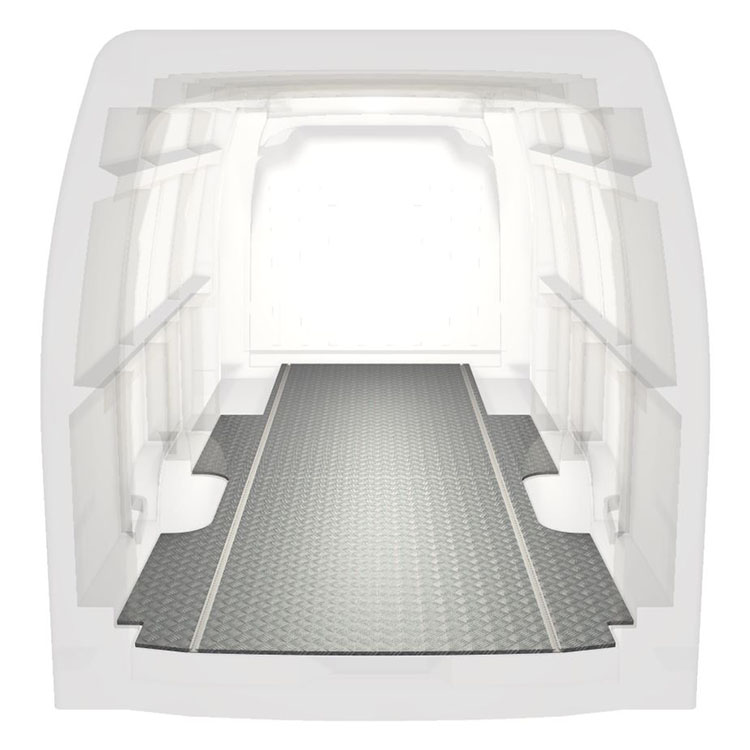 Los suelos extra largos para Renault Master / Opel Movano / Nissan NV400 son ligeros y robustos, e incorporan una placa de aluminio antideslizante y raíles de carga (longitudinal) que permiten la instalación rápida y segura de sistemas de estantes y otros accesorios.
