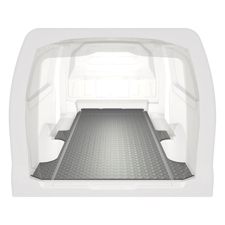 Los suelos extra largos para Mercedes Vito son ligeros y robustos, e incorporan una placa de aluminio antideslizante y raíles de carga (longitudinal) que permiten la instalación rápida y segura de sistemas de estantes y otros accesorios.