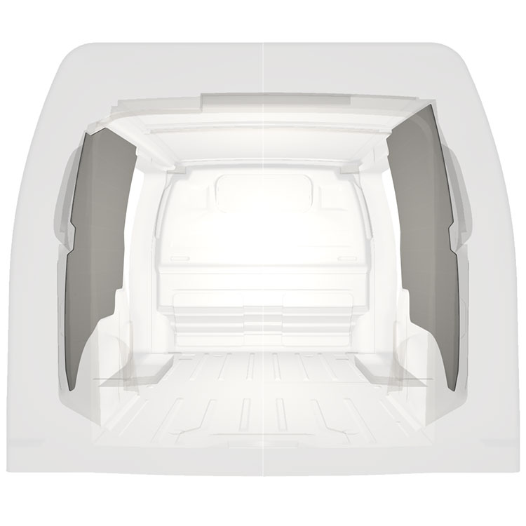 Revestimiento integral ligero para paredes internas de Citroën Jumpy / Peugeot Expert / Toyota ProAce con puerta lateral a ambos lados. Los revestimientos crearán un entorno de trabajo luminoso y agradable y son fáciles de limpiar.
