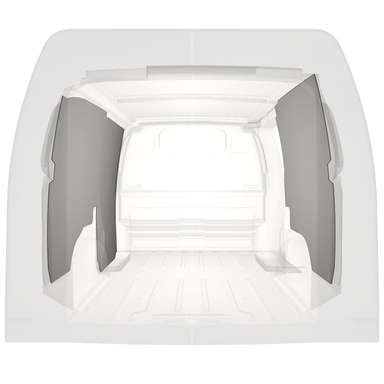 Revestimiento integral ligero para paredes interiores de Citroën Jumpy / Peugeot Expert / Toyota ProAce con puerta lateral a la derecha. Los revestimientos crearán un entorno de trabajo luminoso y agradable y son fáciles de limpiar.