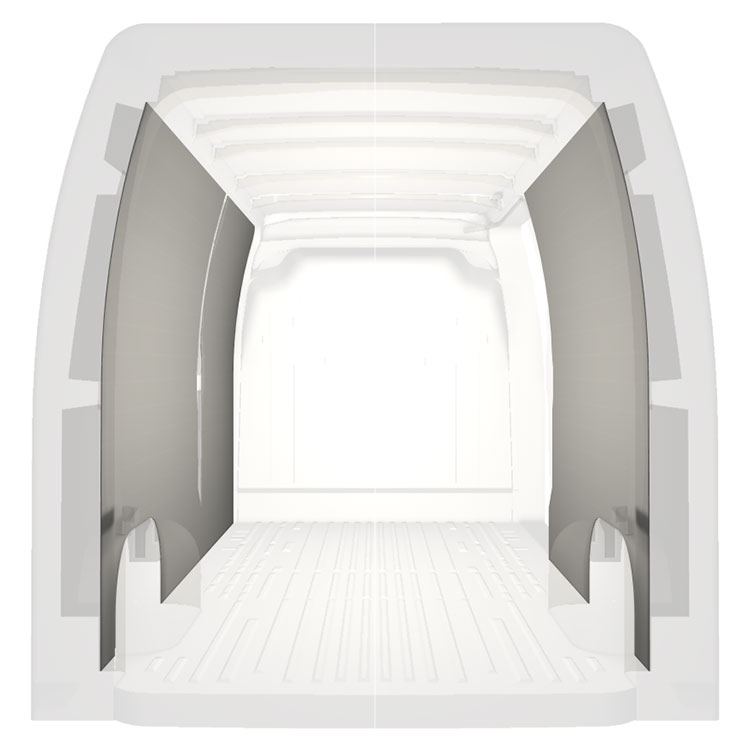 Revestimiento integral ligero para paredes interiores de Renault Master / Opel Movano / Nissan NV400 con puerta lateral a la derecha. Los revestimientos crearán un entorno de trabajo luminoso y agradable y son fáciles de limpiar.