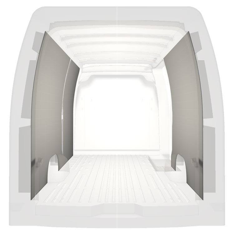 Revestimiento integral ligero para paredes interiores de Renault Master / Opel Movano / Nissan NV400 con puerta lateral a la derecha. Los revestimientos crearán un entorno de trabajo luminoso y agradable y son fáciles de limpiar.