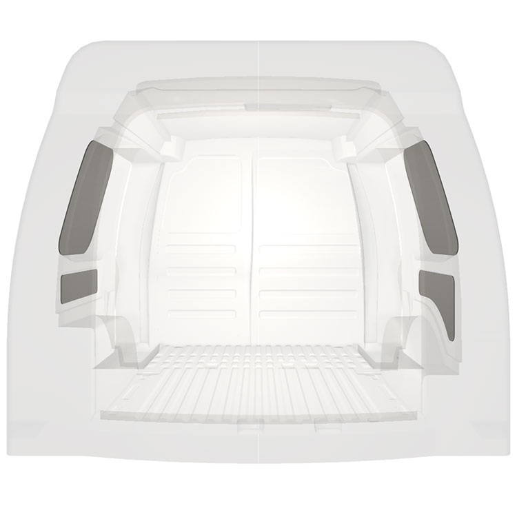 Panelado precortado ligero para paredes interiores de Volkswagen Caddy con puerta lateral a ambos lados. Los revestimientos crearán un entorno de trabajo luminoso y agradable y son fáciles de limpiar.