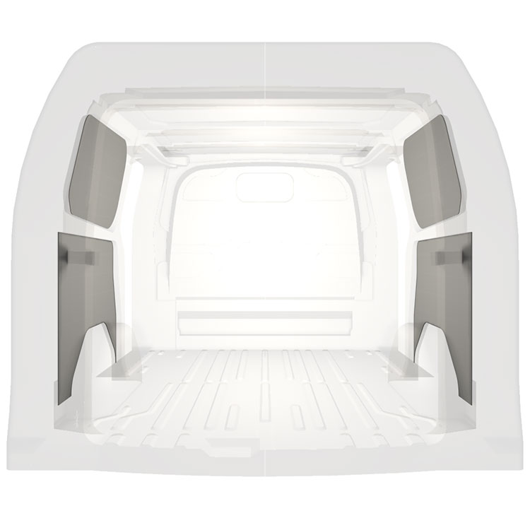 Panelado precortado ligero para paredes interiores de Ford Transit Custom con puerta lateral a ambos lados. Los revestimientos crearán un entorno de trabajo luminoso y agradable y son fáciles de limpiar.