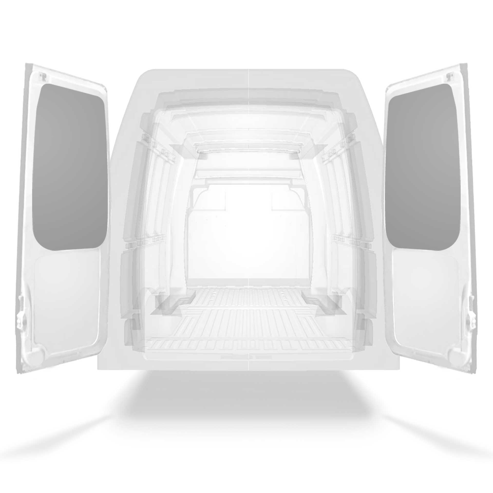 Revestimiento panelado posterior superior ligero para portón trasero de Iveco Daily con dos puertas laterales. Diseñado para conferir un acabado profesional al interior, los revestimientos para puertas protegerán la furgoneta y son fáciles de limpiar.