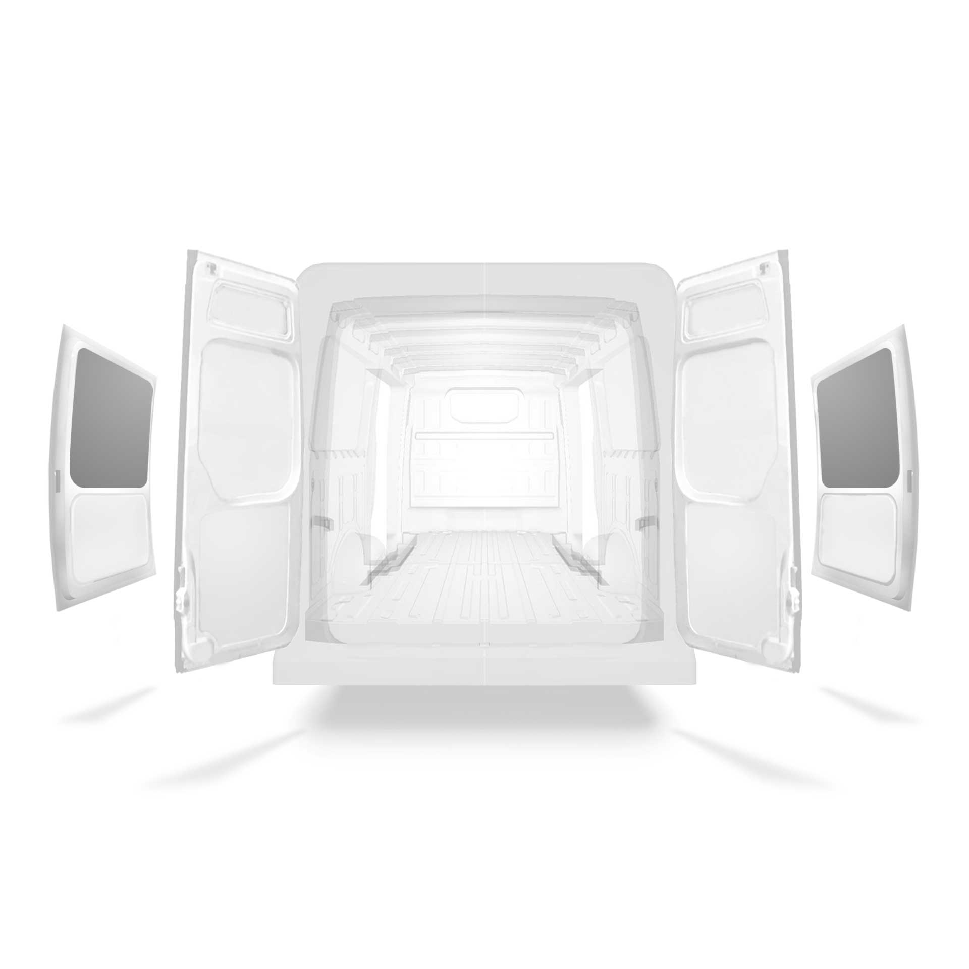 Panelado ligero para paredes interiores de Volkswagen Crafter / MAN TGE con puerta lateral a ambos lados. El revestimiento reducirá el desgaste y el deterioro del interior, y ayudará a mantener el valor residual de la furgoneta.