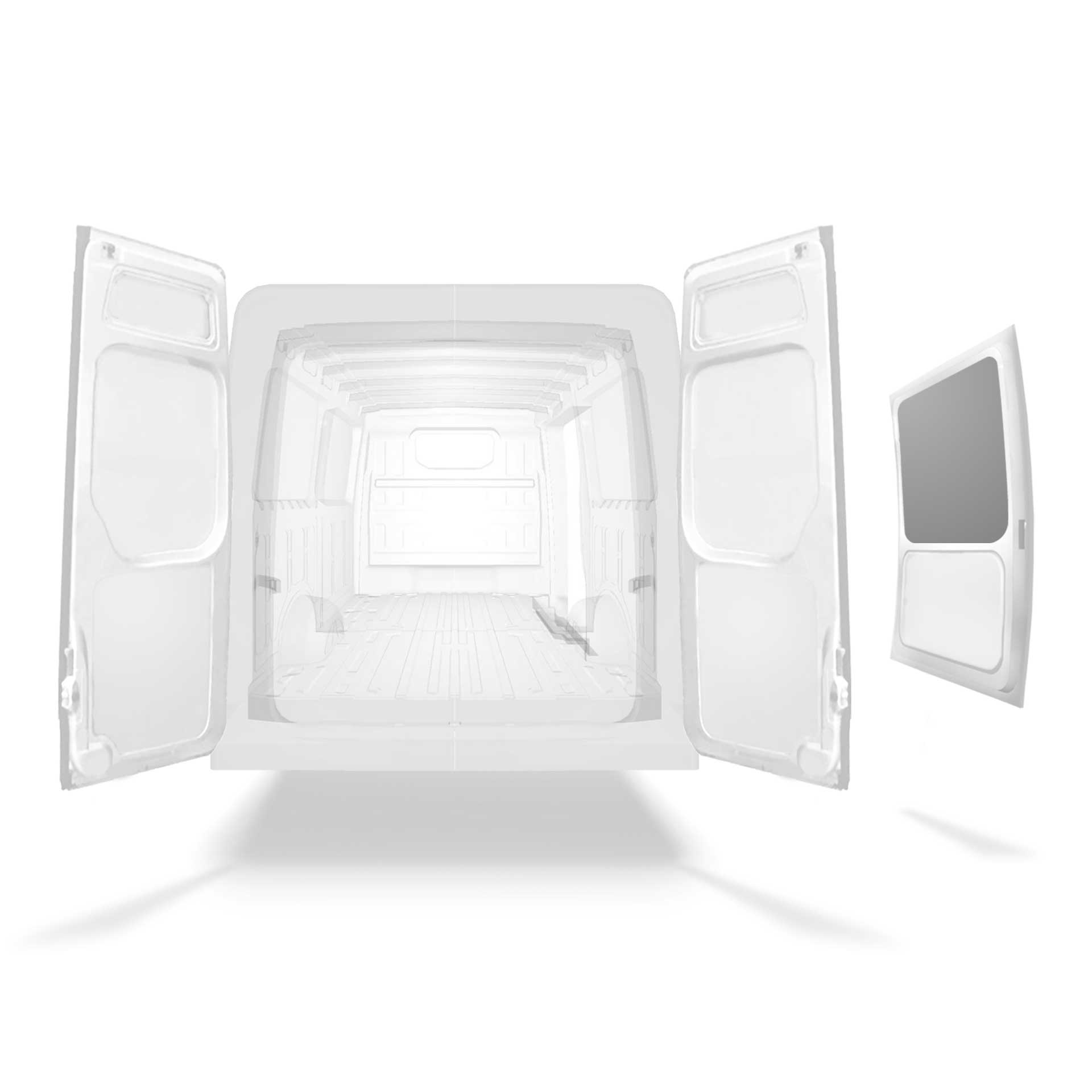 Panelado ligero para paredes interiores de Volkswagen Crafter / MAN TGE con puerta lateral a la derecha. El revestimiento reducirá el desgaste y el deterioro del interior, y ayudará a mantener el valor residual de la furgoneta.