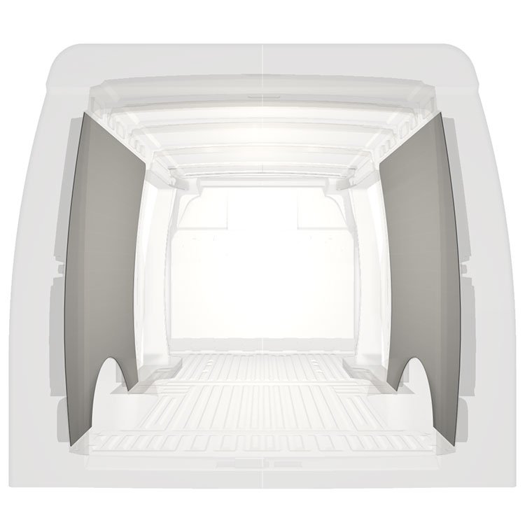 Revestimiento integral ligero para paredes internas de Iveco Daily con puerta lateral a ambos lados. Los revestimientos crearán un entorno de trabajo luminoso y agradable y son fáciles de limpiar.