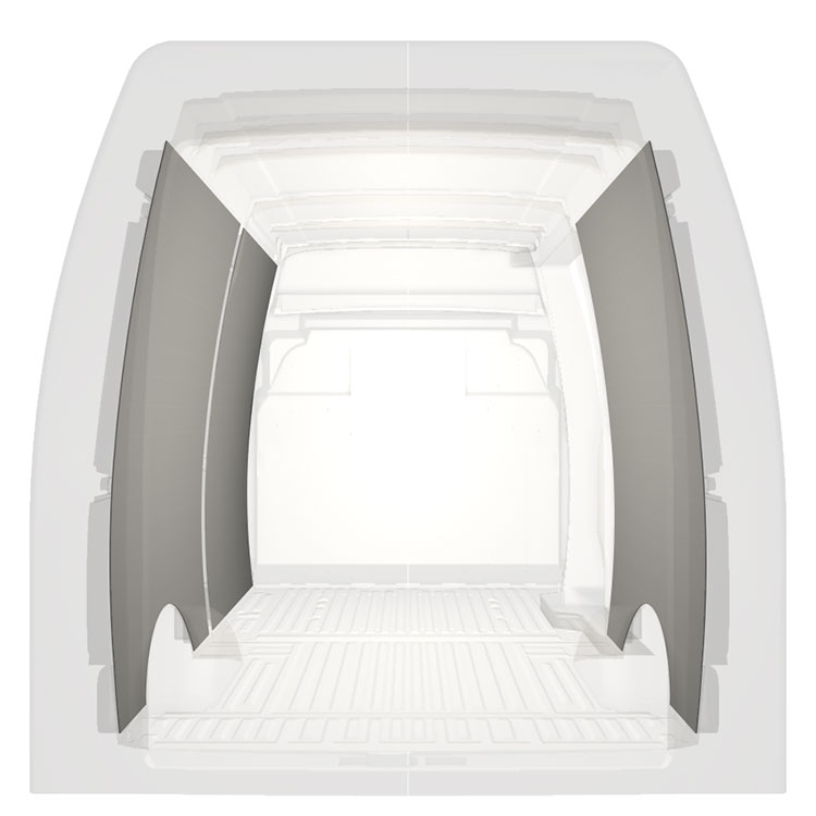 Revestimiento integral ligero para paredes interiores de Iveco Daily con puerta lateral a la derecha. Los revestimientos crearán un entorno de trabajo luminoso y agradable y son fáciles de limpiar.