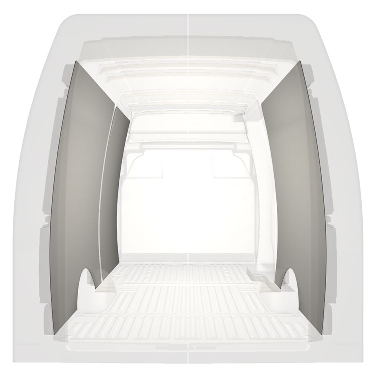 Revestimiento integral ligero para paredes interiores de Iveco Daily con puerta lateral a la derecha. Los revestimientos crearán un entorno de trabajo luminoso y agradable y son fáciles de limpiar.