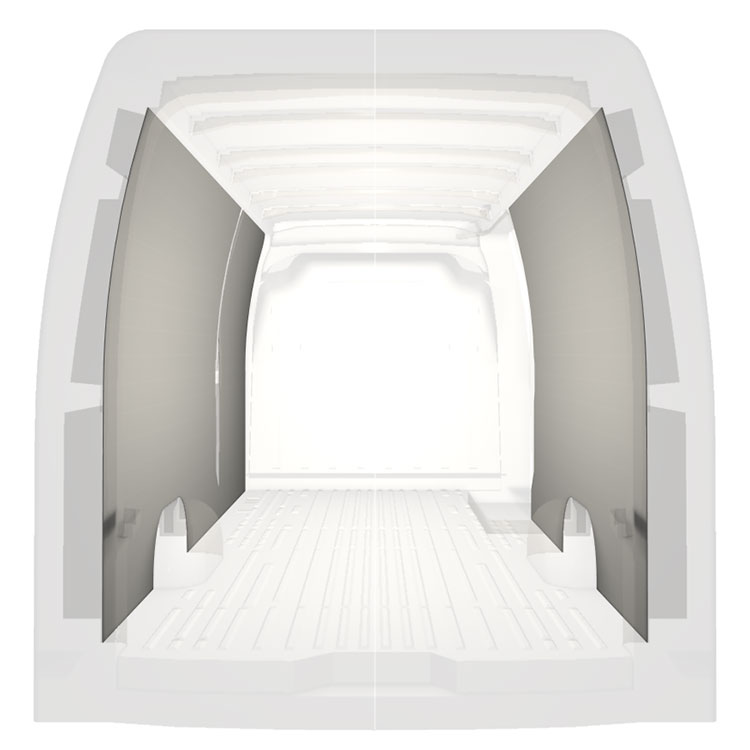 Revestimiento integral ligero para paredes interiores de Renault Master / Opel Movano / Nissan NV400 con puerta lateral a la derecha. Los revestimientos crearán un entorno de trabajo luminoso y agradable y son fáciles de limpiar.