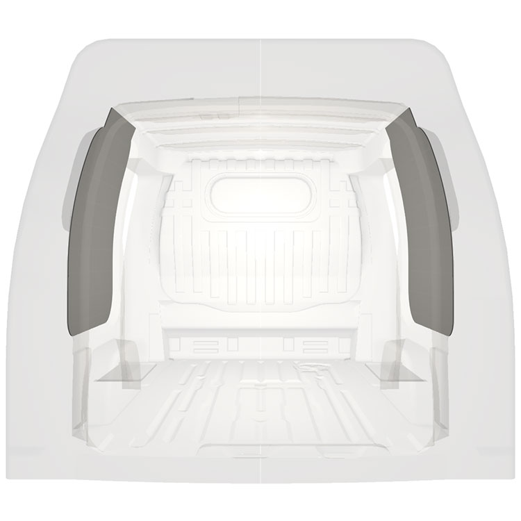 Revestimiento integral ligero para paredes internas de Nissan NV200 con puerta lateral a ambos lados. Los revestimientos crearán un entorno de trabajo luminoso y agradable y son fáciles de limpiar.