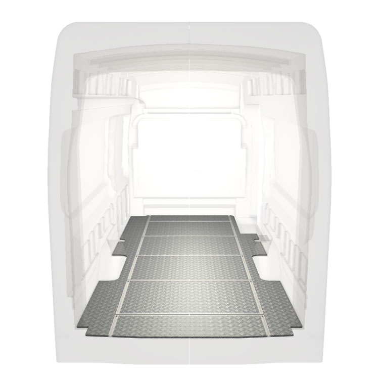 Disponemos de suelos ligeros y robustos con raíles transversales para Ford Transit que incorporan una placa de aluminio antideslizante y raíles de carga (longitudinales y transversales) que permiten la instalación rápida y segura de sistemas de estantes y otros accesorios.