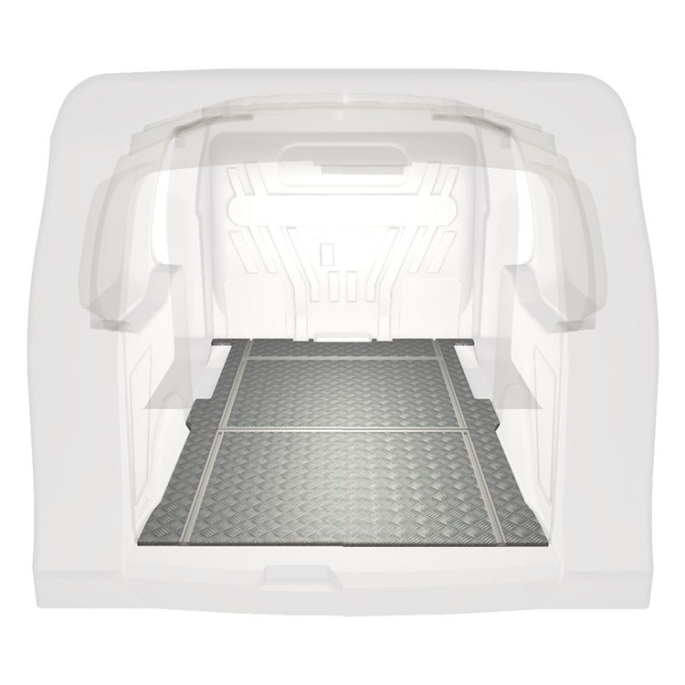 Disponemos de suelos ligeros y robustos con raíles transversales para Ford Transit Connect que incorporan una placa de aluminio antideslizante y raíles de carga (longitudinales y transversales) que permiten la instalación rápida y segura de sistemas de estantes y otros accesorios.