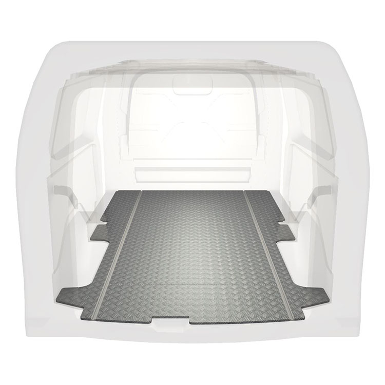Nuestros suelos estándar para Ford Transit Custom incorporan una placa de aluminio antideslizante y raíles de carga (longitudinal) que permiten la instalación rápida y segura de sistemas de estantes y otros accesorios.
