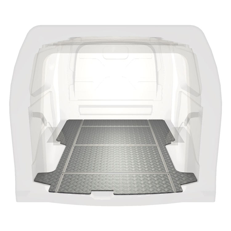Disponemos de suelos ligeros y robustos con raíles transversales para Ford Transit Custom que incorporan una placa de aluminio antideslizante y raíles de carga (longitudinales y transversales) que permiten la instalación rápida y segura de sistemas de estantes y otros accesorios.