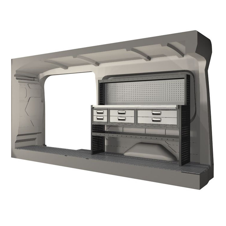 El equipamiento ha sido especialmente diseñado para garantizar el ajuste óptimo para el vehículo, así como la mayor funcionalidad y seguridad posible. Se ha desarrollado para uso profesional, es versátil y está destinado para trabajos de servicio en diversos tipos de negocio. Todas las estanterías están equipadas con alfombrillas de goma, y todos los cajones con alfombrillas de espuma de plástico. Los accesorios de montaje están incluidos.