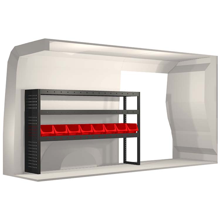 El equipamiento ha sido especialmente diseñado para garantizar el ajuste óptimo para el vehículo, así como la mayor funcionalidad y seguridad posible. Se ha desarrollado para uso profesional, es versátil y está destinado para trabajos de servicio en diversos tipos de negocio. Todas las estanterías están equipadas con alfombrillas de goma, y todos los cajones con alfombrillas de espuma de plástico. Los accesorios de montaje están incluidos.