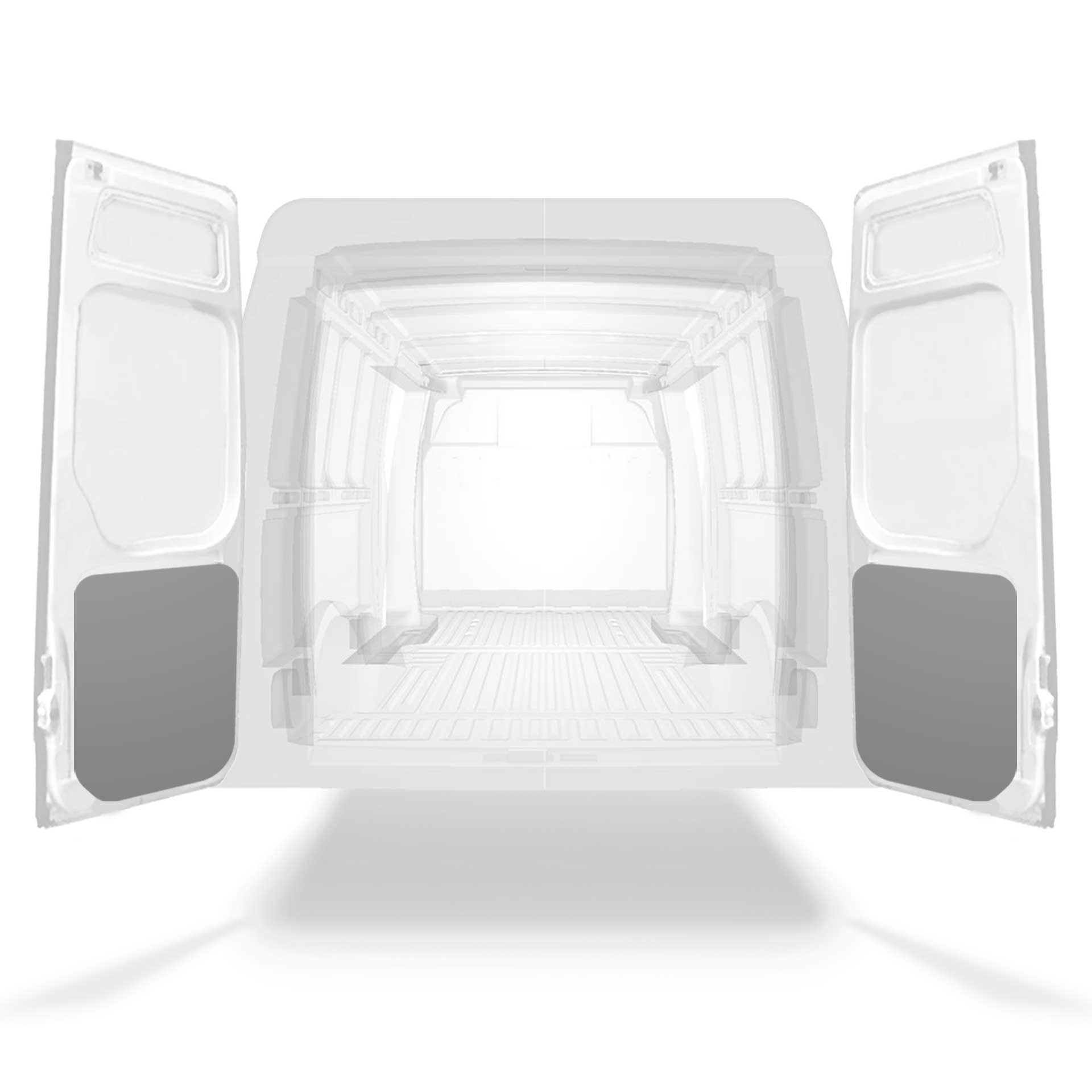 Revestimiento panelado posterior inferior ligero para portón trasero de Iveco Daily con dos puertas laterales. Diseñado para conferir un acabado profesional al interior, los revestimientos para puertas protegerán la furgoneta y son fáciles de limpiar.