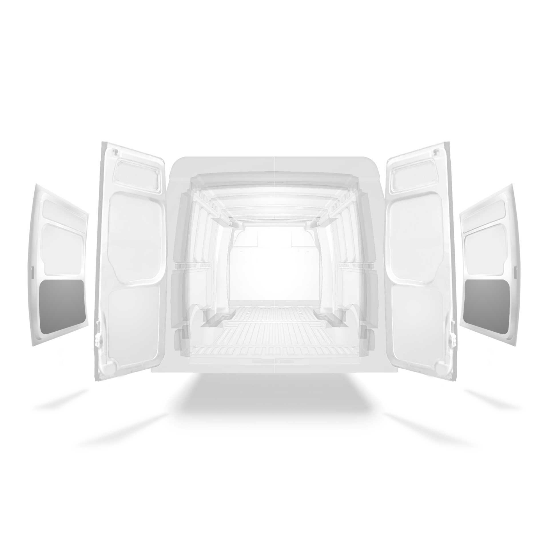 Revestimiento ligero para la parte inferior de la puerta lateral de una Iveco Daily con puertas laterales dobles. El revestimiento reducirá el desgaste y el deterioro del interior, y ayudará a mantener el valor residual de la furgoneta.