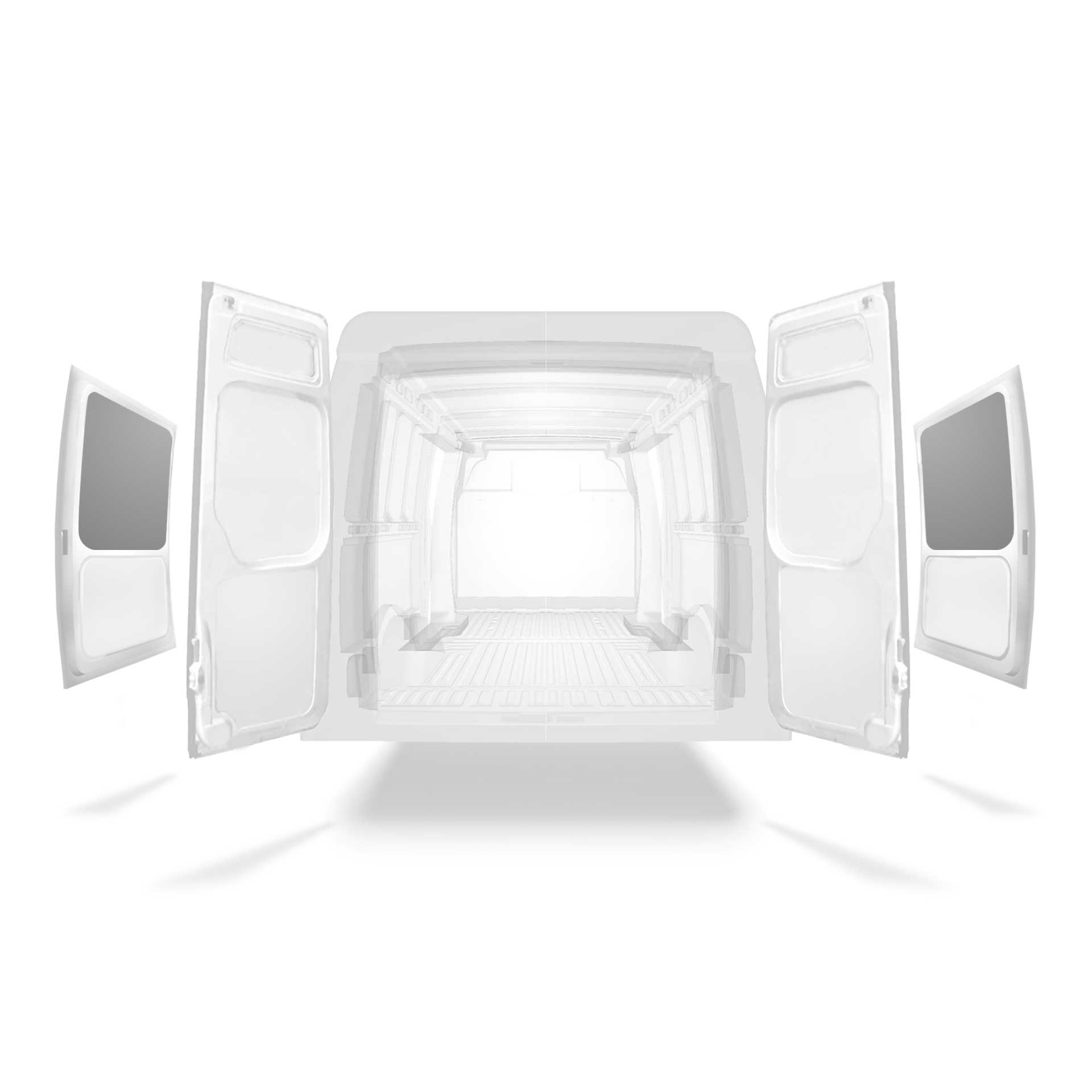 Panelado ligero para paredes interiores de Iveco Daily con puerta lateral a ambos lados. El revestimiento reducirá el desgaste y el deterioro del interior, y ayudará a mantener el valor residual de la furgoneta.