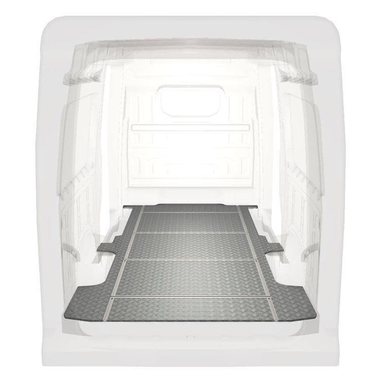 Disponemos de suelos ligeros y robustos con raíles transversales para Volkswagen Crafter / MAN TGE que incorporan una placa de aluminio antideslizante y raíles de carga (longitudinales y transversales) que permiten la instalación rápida y segura de sistemas de estantes y otros accesorios.