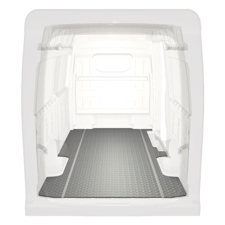 Los suelos extra largos para Volkswagen Crafter / MAN TGE son ligeros y robustos, e incorporan una placa de aluminio antideslizante y raíles de carga (longitudinal) que permiten la instalación rápida y segura de sistemas de estantes y otros accesorios.