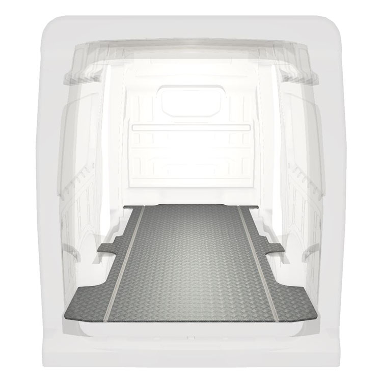 Los suelos extra largos para Volkswagen Crafter / MAN TGE son ligeros y robustos, e incorporan una placa de aluminio antideslizante y raíles de carga (longitudinal) que permiten la instalación rápida y segura de sistemas de estantes y otros accesorios.