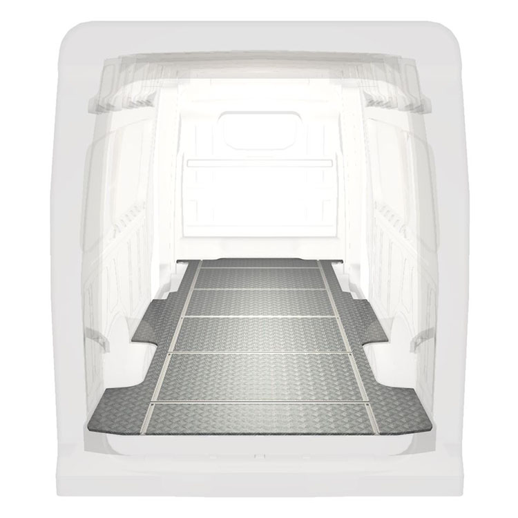 Disponemos de suelos ligeros y robustos con raíles transversales para Volkswagen Crafter / MAN TGE que incorporan una placa de aluminio antideslizante y raíles de carga (longitudinales y transversales) que permiten la instalación rápida y segura de sistemas de estantes y otros accesorios.
