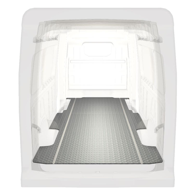 Los suelos extra largos para Volkswagen Crafter / MAN TGE son ligeros y robustos, e incorporan una placa de aluminio antideslizante y raíles de carga (longitudinal) que permiten la instalación rápida y segura de sistemas de estantes y otros accesorios.