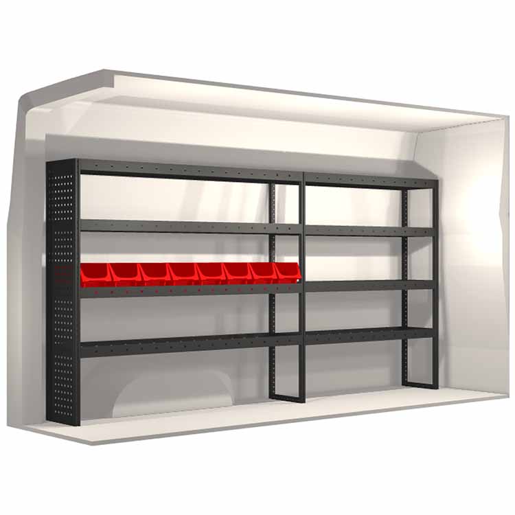 El equipamiento ha sido especialmente diseñado para garantizar el ajuste óptimo para el vehículo, así como la mayor funcionalidad y seguridad posible. Se ha desarrollado para uso profesional, es versátil y está destinado para trabajos de servicio en diversos tipos de negocio. Todas las estanterías están equipadas con alfombrillas de goma, y todos los cajones con alfombrillas de espuma de plástico. Los accesorios de montaje están incluidos.