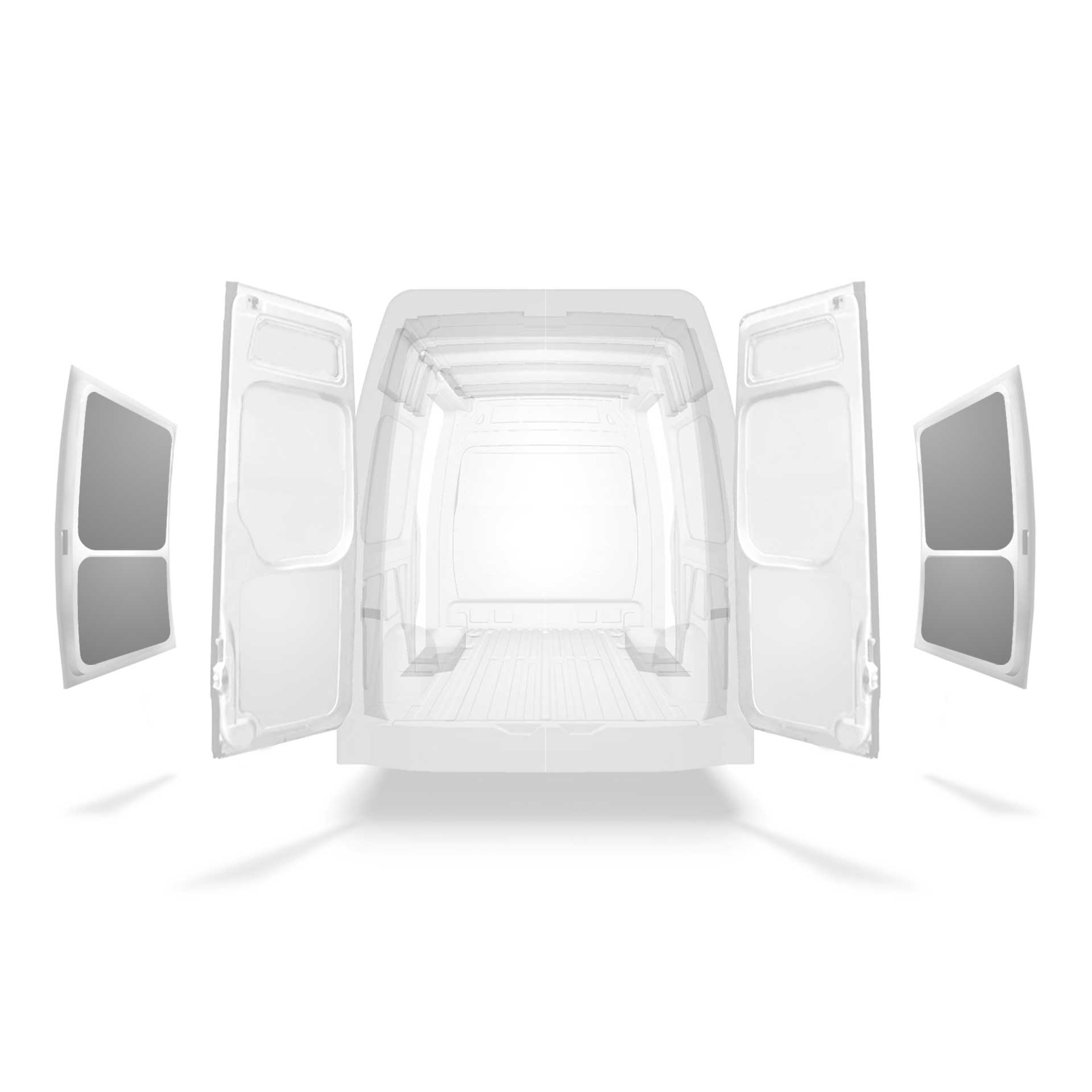 Este ligero revestimiento panelado de puertas laterales es para una Mercedes Sprinter con puertas laterales dobles. Todos los materiales del revestimiento panelado utilizados son fáciles de limpiar y crean un entorno de trabajo luminoso.