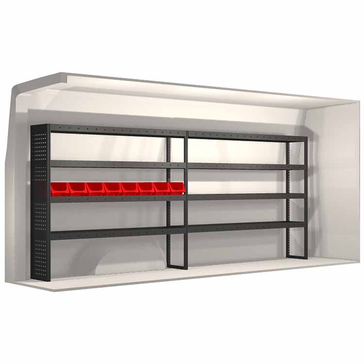 El equipamiento ha sido especialmente diseñado para garantizar el ajuste óptimo para el vehículo, así como la mayor funcionalidad y seguridad posible. Se ha desarrollado para uso profesional, es versátil y está destinado para trabajos de servicio en diversos tipos de negocio. Todas las estanterías están equipadas con alfombrillas de goma, y todos los cajones con alfombrillas de espuma de plástico. Los accesorios de montaje están incluidos.