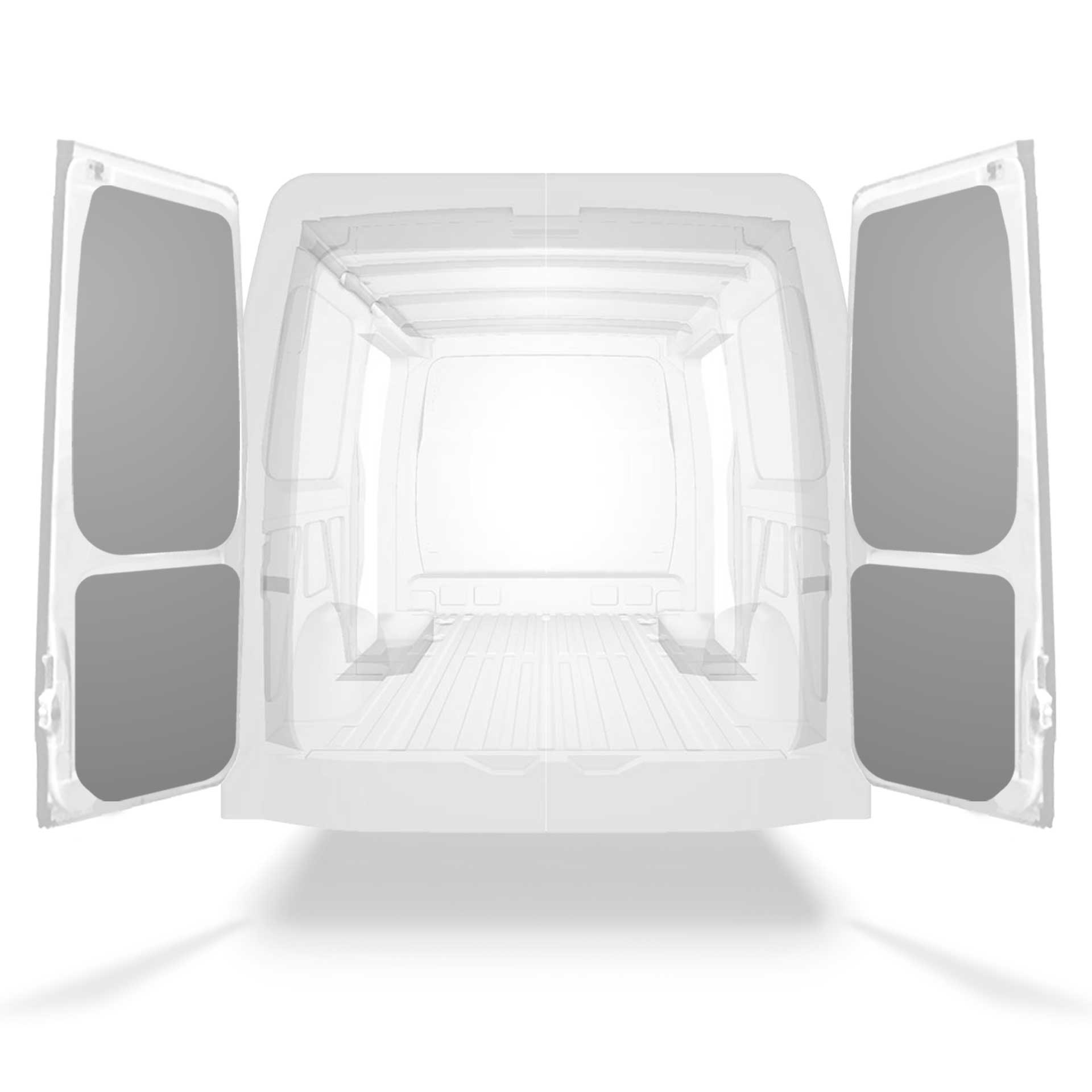 Revestimiento panelado posterior ligero para portón trasero de Mercedes Sprinter con dos puertas laterales. Diseñado para conferir un acabado profesional al interior, los revestimientos para puertas protegerán la furgoneta y son fáciles de limpiar.