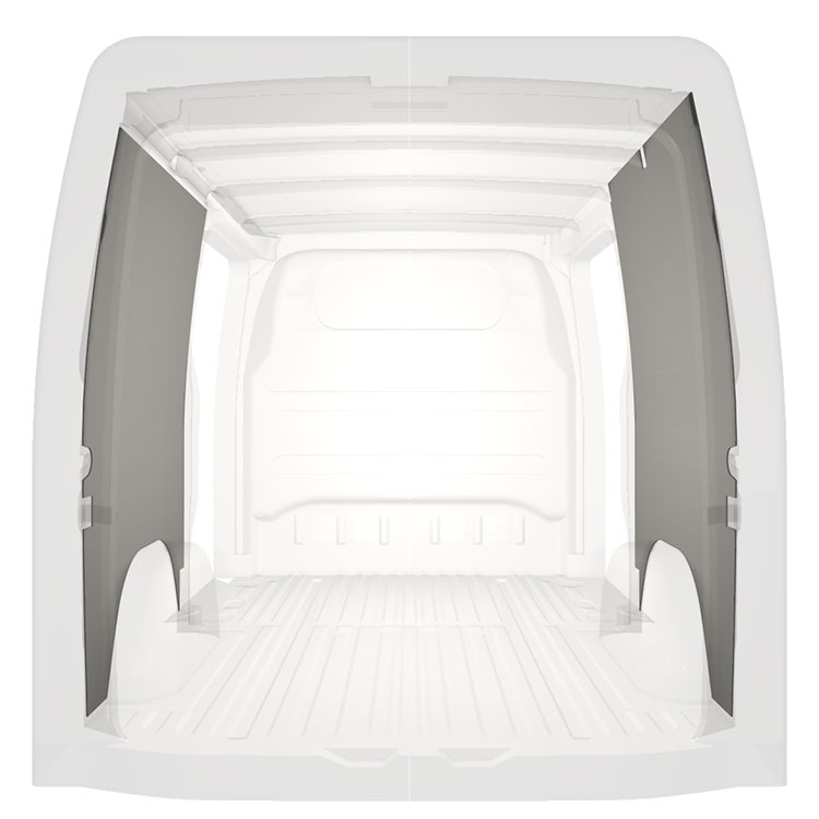 Revestimiento integral ligero para paredes internas de Mercedes Sprinter con puerta lateral a ambos lados. Los revestimientos crearán un entorno de trabajo luminoso y agradable y son fáciles de limpiar.