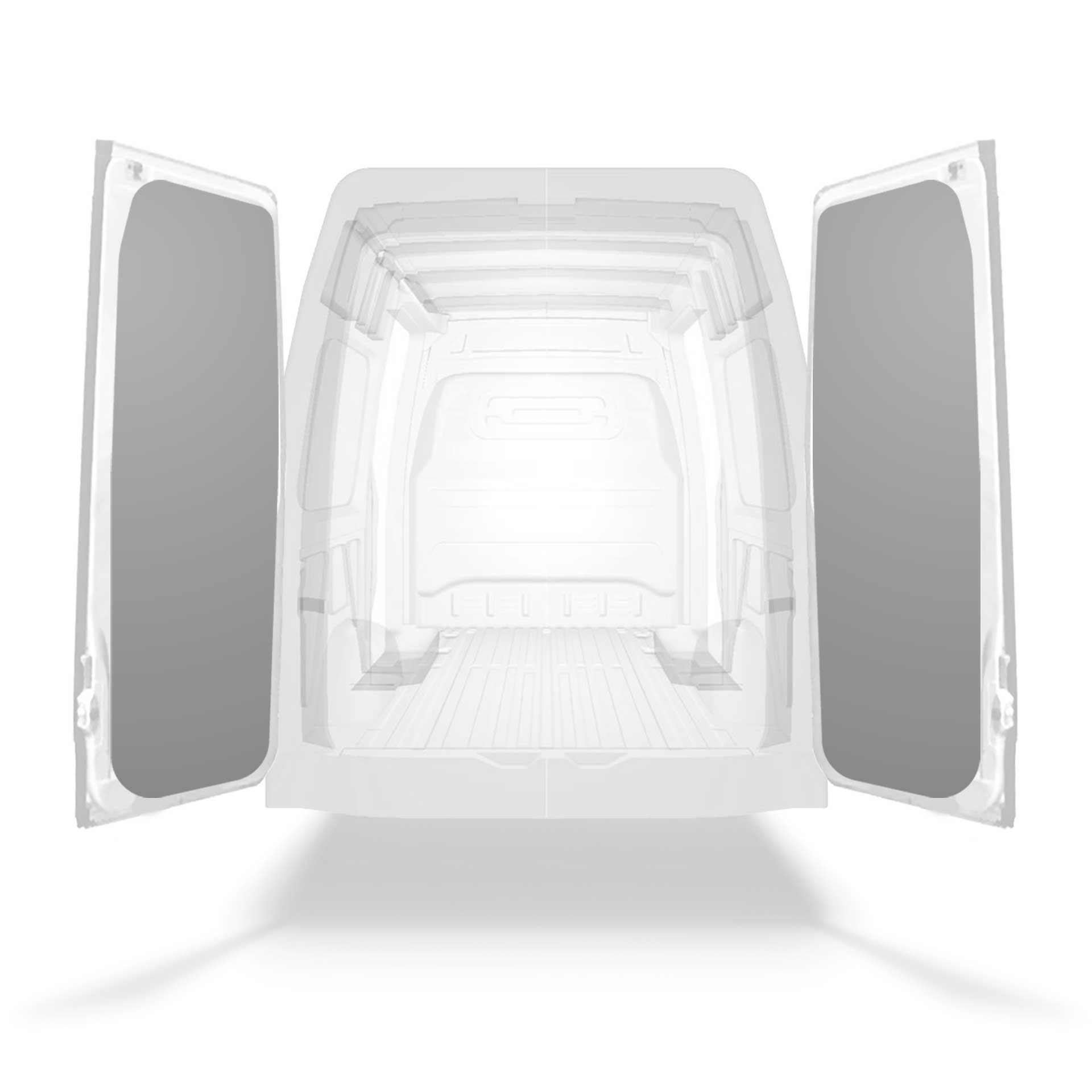 Panelado integral ligero para portón trasero de Mercedes Sprinter con dos puertas laterales. Diseñado para conferir un acabado profesional al interior, los revestimientos para puertas protegerán la furgoneta y son fáciles de limpiar.
