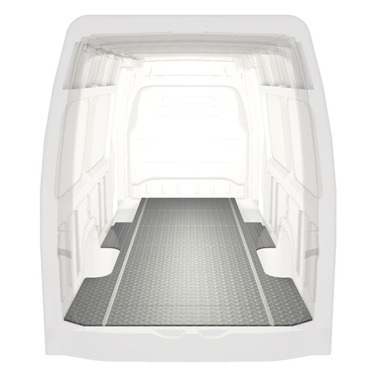 Nuestros suelos estándar para Mercedes Sprinter incorporan una placa de aluminio antideslizante y raíles de carga (longitudinal) que permiten la instalación rápida y segura de sistemas de estantes y otros accesorios.